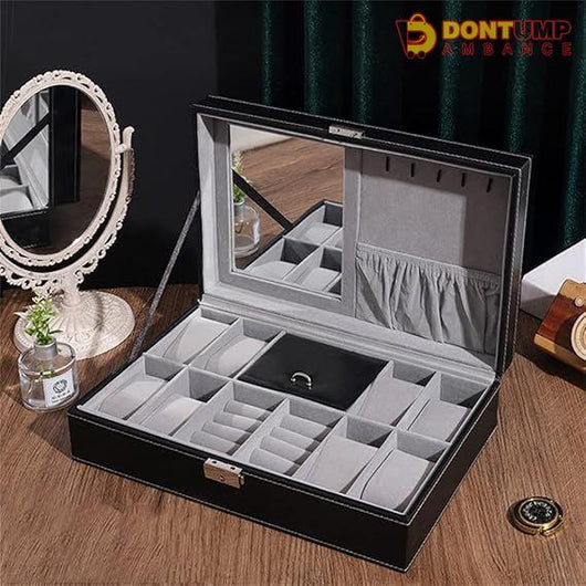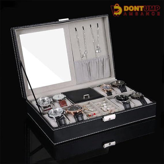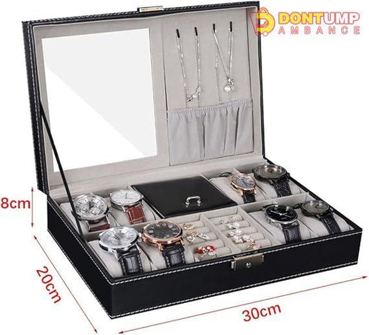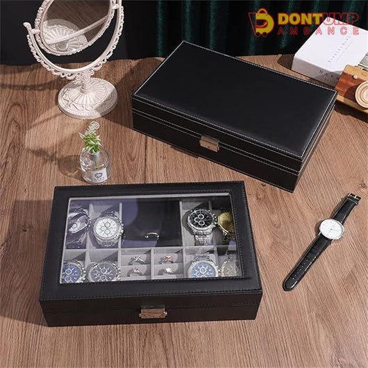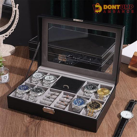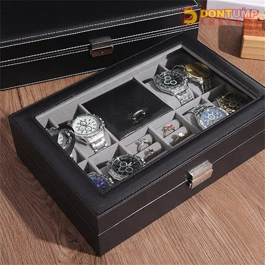 2-Layer Large Leather Watch Box Organizer Jewelry Case Display Drawer Lockable Case Organizer