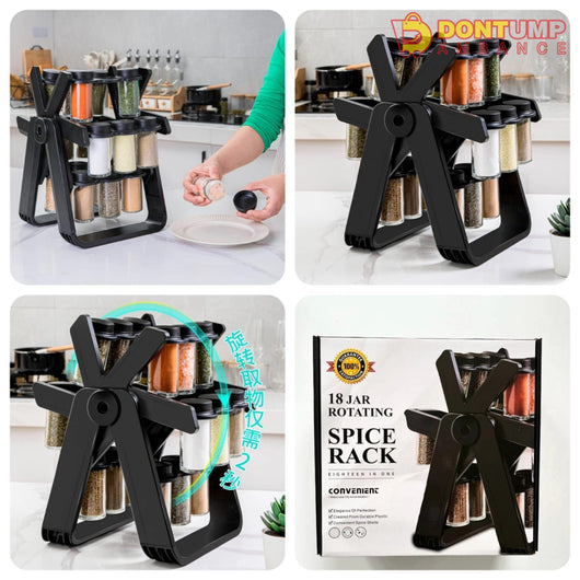 Expertly organize and display your spices with the 18 Jar Rotating Spice Rack. With a sleek, rotating design, this spice rack holds 18 jars, keeping your kitchen essentials within easy reach. Made from durable materials, it will save you both time and space while adding a touch of style to your kitchen.