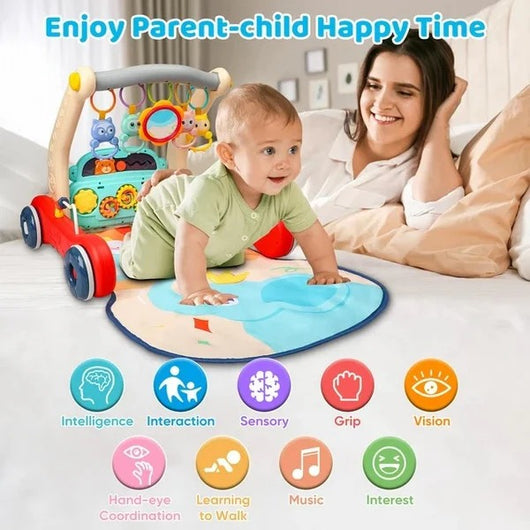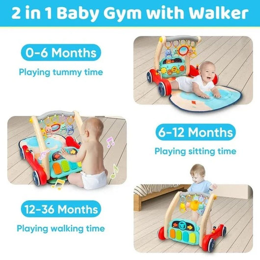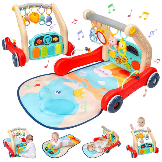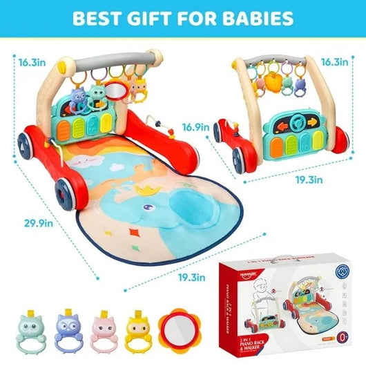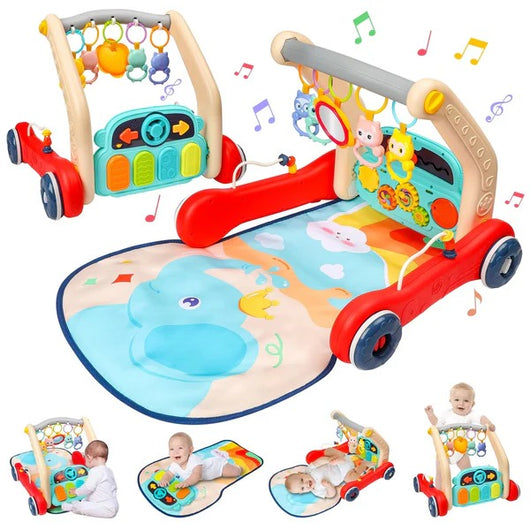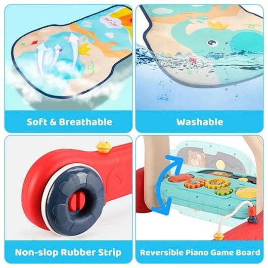 This 2 in 1 Baby Play Mat combines interactive play and developmental support, featuring a soft play surface with engaging patterns and a detachable push walker designed to encourage mobility. The integrated musical piano keyboard introduces sensory stimulation and early musical learning, promoting hand-eye coordination and auditory development. Ideal for infants transitioning from tummy time to walking, this multifunctional set supports motor skills and cognitive growth in a safe, entertaining environment.