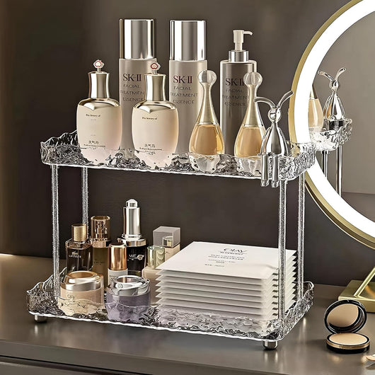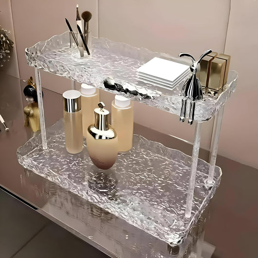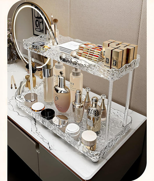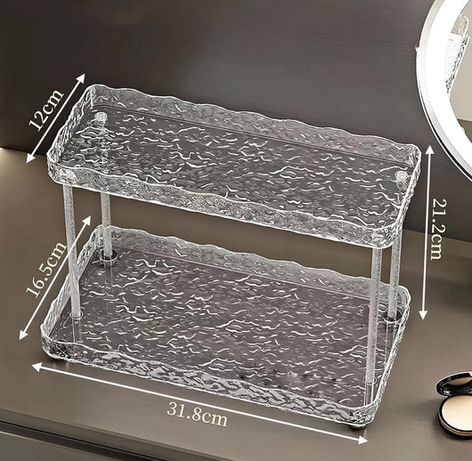 This 2-tier clear textured acrylic organizer tray offers a sleek and durable solution for neatly arranging your essentials. Its transparent design provides easy visibility, while the textured surface prevents items from slipping. Ideal for desks, vanities, or countertops, it maximizes space by stacking two layers, helping you maintain an orderly environment with professional precision.