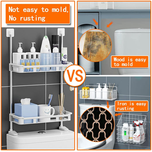 Optimize your bathroom storage with the 2-Tier Over-the-Toilet Storage Rack featuring a strong adhesive mount. This space-saving rack offers two sturdy shelves for organizing toiletries, towels, and essentials without drilling or damage. The adhesive mounting system ensures easy installation and secure placement, making it ideal for rental or limited-space bathrooms. Durable and practical, it enhances bathroom functionality while maintaining a clean, clutter-free look.