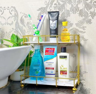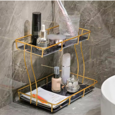 Elevate your space with the 2-Tier Rectangular Golden Vanity Stand, designed for both style and functionality. Its sleek rectangular shape and golden finish add a touch of sophistication, while the two tiers provide ample storage for organizing cosmetics, accessories, or toiletries. Crafted to maximize space efficiency, this vanity stand combines durability with elegant design, making it an expert choice for enhancing your dressing area.