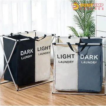 This laundry basket with six different use cards. Laundry basket can be used for your choice what types of clothes in it. It is specially designed for domestic use, two separate parts to hold your clothes or other things. Your best assistant to store messy clothes, toys or other everyday things. Ideal for use in the bathroom, bedroom, living room, study room, children's room, closet etc. It has lightweight and soft grip handle design of laundry baskets provides comfortable and durable using experience. The aluminum handle and laundry basket are reinforced connected to ensure that it will not tear easily when loading heavy laundry. It gives good looking appearance, pleasing to your eyes. It has a storage function and a beautiful home decoration at the same time.