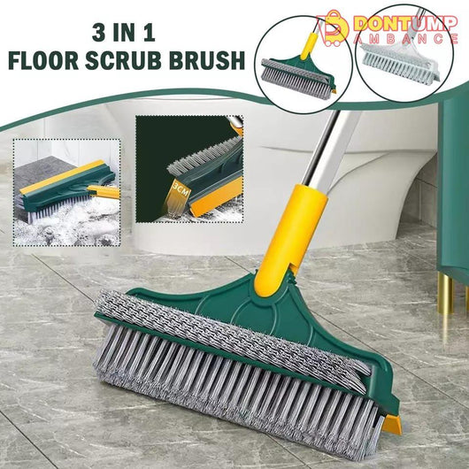 Floor Scrub Brush 3 in 1 Scrape & brush Push Broom Effective, Easy & Save Effort Brush + scraper 3 in 1 design floor scrub brush with stiff bristle + rubber squeegee, Stiff bristles effectively remove stains on rough and hard floor. Strong cleaning ability, Brush + scrape steps to easily remove the stain, stubborn grime, dirty water, and dust; Improve effectiveness when you doing housework.