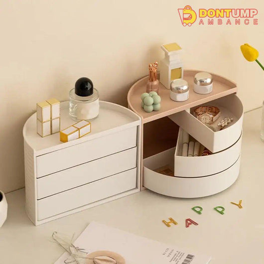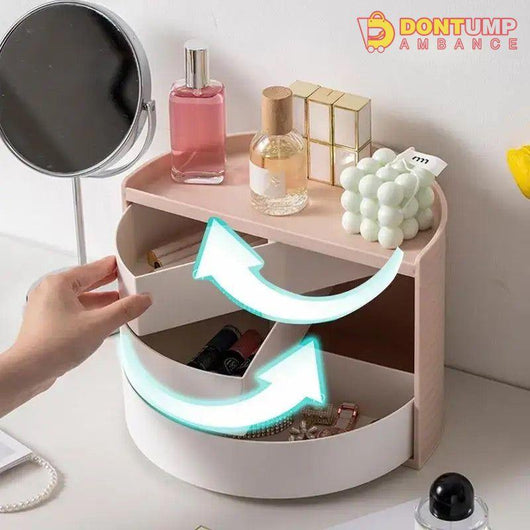 This 3-layer semicircle cosmetic organizer offers maximum storage for your cosmetics and beauty products. Made with high-quality materials and a sleek design, it keeps your products organized and easily accessible. With 3 layers of space, you can easily find and use your cosmetics without clutter.