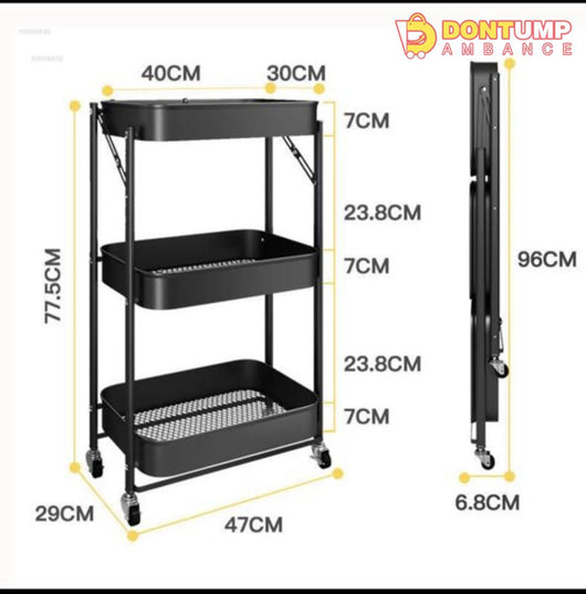 This 3 Tier Fold Away Trolley is a must-have for any professional or home setting. Its imported design adds a touch of quality and convenience, making it perfect for organizing and transporting items. With three tiers, it offers ample storage space while remaining compact and easy to store away when not in use.