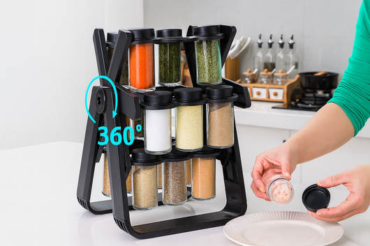Maximize your kitchen efficiency with this 360° Rotating Spice Rack Organizer featuring 16 refillable jars. Designed for expert organization, it offers easy access to a variety of spices while saving valuable counter space. The smooth carousel rotation ensures quick selection, keeping your cooking essentials neatly arranged and within reach. Ideal for maintaining a clutter-free kitchen, this durable spice rack enhances both functionality and aesthetics.
