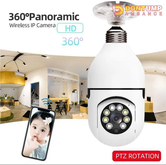 This 360° Wireless Wifi Panoramic Bulb Camera offers a wide-angle view for complete coverage and remote monitoring through a mobile app. With its easy-to-install design, you can easily keep an eye on your home or business from anywhere. Upgrade your security and peace of mind today.