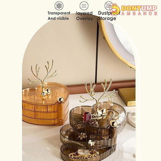 The 3L acrylic deer jewelry organizer is a stylish and functional addition to any vanity or dresser. Made from durable acrylic material, it features three levels for storing and organizing all your jewelry. Keep your accessories easily accessible and tangle-free with this sleek organizer.