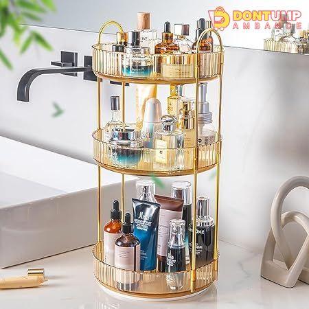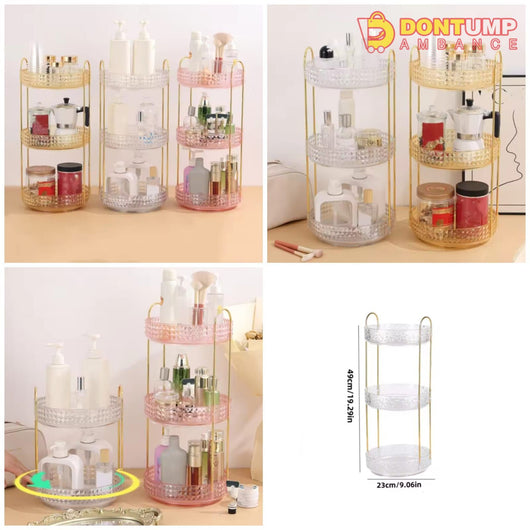 Organize your cosmetics with ease using our 3Layer Rotating Cosmetic Organizer Rack. With its 360-degree rotating design, this rack allows for easy access to all of your beauty products. Its durable material and spacious storage compartments make it the ideal organizer for your vanity or bathroom counter.