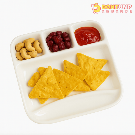 This 4-compartment ceramic snack plate is expertly designed to keep your chips, nuts, dips, and other snacks neatly separated. Crafted from durable ceramic, it offers a stylish and practical solution for serving a variety of treats at gatherings or everyday use. Its divided sections help maintain flavors and presentation, making it ideal for entertaining with ease and sophistication.