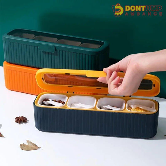 4 Grids Seasoning Storage Box With Spoon