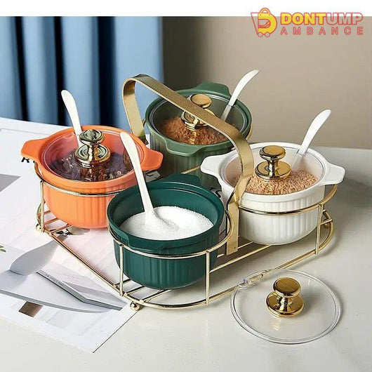This 4-piece spice box comes with a convenient rack for organizing and storing spices. Each box is designed with a secure lid to keep spices fresh and easily accessible. Maximize your cooking efficiency with this functional spice set.