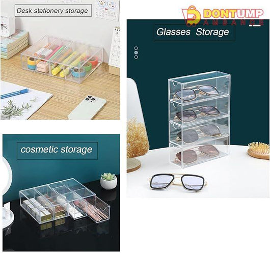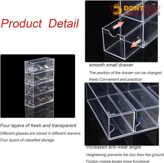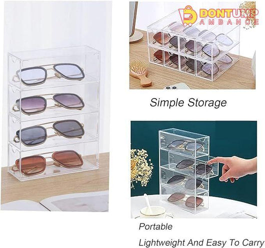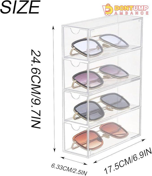 Organize and display your sunglasses collection in style with our 4Layer Acrylic Sunglasses Storage Box. Made of durable acrylic, this box features four layers to accommodate multiple pairs of sunglasses. Keep your eyewear protected and easily accessible with this sleek and modern storage solution.