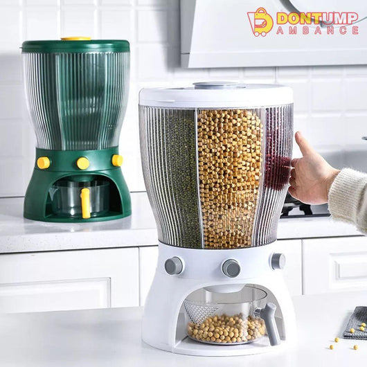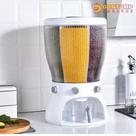 This 4-partition rotating cereal dispenser allows for easy access to a variety of breakfast options. The rotating feature saves space and keeps cereal fresh. Durable and sleek, this dispenser is the perfect addition to any kitchen.