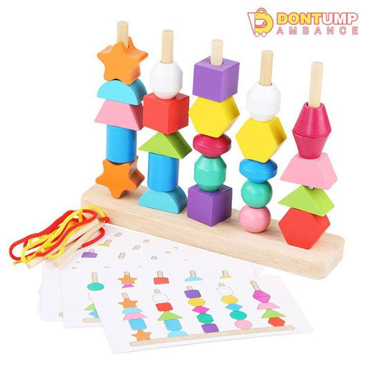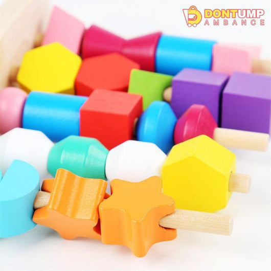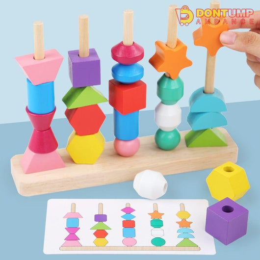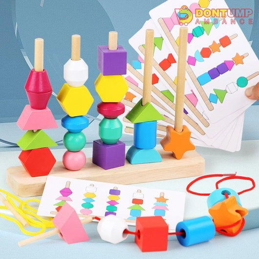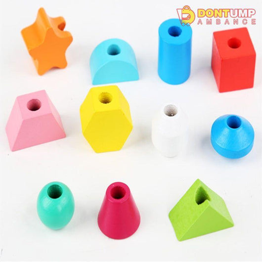 A brilliant set of wooden blocks for building fine motor, hand-on ability, logical thinking, hand-eye coordination, shape & color learning, patience training, and cognitive, dexterity and sorting skills. It can be used to teach sorting, stacking, lacing, balancing and counting.