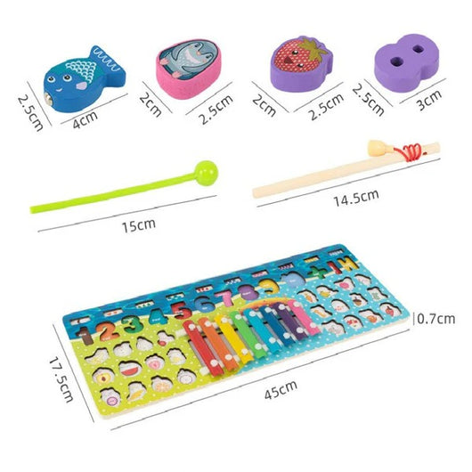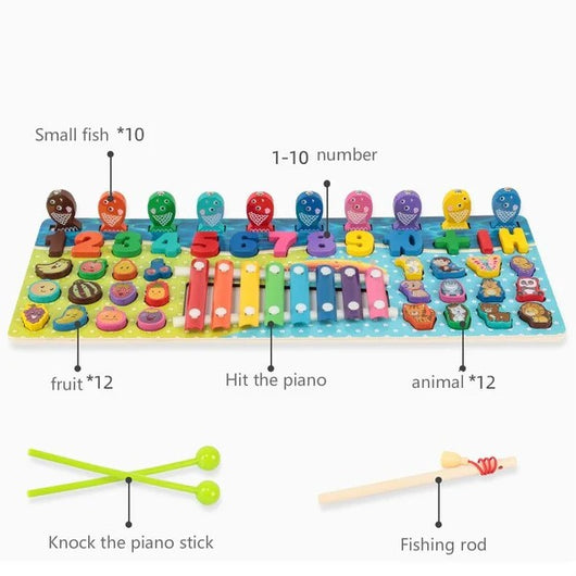 The 5 in 1 Wooden Puzzle Board with Xylophone offers a multifunctional learning experience combining a classic puzzle set with a built-in xylophone. Crafted from durable wood, it enhances fine motor skills, cognitive development, and auditory recognition in children. This integrated design promotes creativity and problem-solving through interactive play, making it ideal for early childhood education. Compact and sturdy, it delivers lasting value for developmental playtime.
