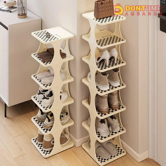 This 5-layer shoe rack offers a space-saving solution for organizing your footwear. With its sturdy construction and multiple layers, it can hold a variety of shoe sizes and styles. Keep your closet clutter-free and easily find the perfect pair with this reliable shoe rack.