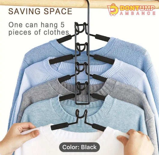Organize your wardrobe with ease using our 5 Tier Metal Anti Slip Clothes Hanger. Our durable hanger features 5 tiers for efficient storage and anti-slip design to keep your clothes in place. Say goodbye to messy closets and hello to a well-organized and efficient clothing storage solution.