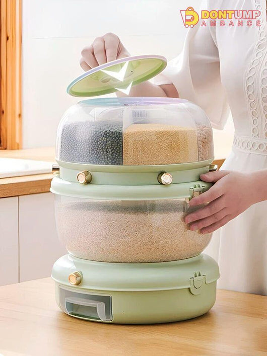 - ♥ [Various Grain Storage] : This 6-cell sealed rotary grain bucket is ideal for storing flour, brown sugar, grains, nuts, legumes, snacks, pasta, coffee, tea, to meet all the storage needs of your family