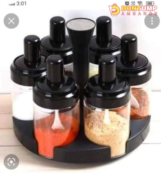 This 6 piece rotating spices jar set is a convenient and organized way to store and access your favorite spices. With easy rotation, you'll never have to dig around for that seasoning again. Perfect for any kitchen, this set is a must-have for any home cook or chef.