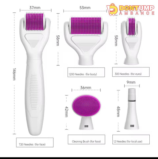 The 6in1 Derma Roller offers 6 different roller heads for versatile skincare treatments. Designed for professional and at-home use, this tool uses micro-needling technology to improve the appearance of fine lines, wrinkles, and scars. With this all-in-one roller, you can achieve smoother and more youthful-looking skin.