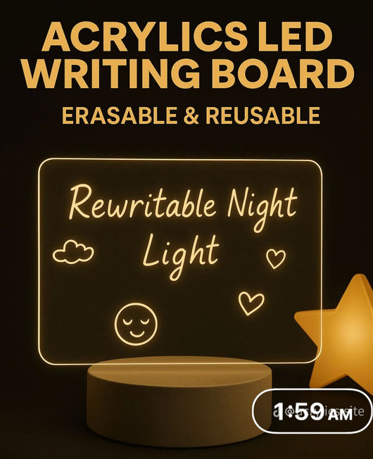 This acrylic writing board with an LED base offers a clear, smooth surface ideal for notes, drawings, or messages. The integrated LED base illuminates the writing, enhancing visibility and creating a striking visual effect, especially in low-light settings. Designed for durability and ease of use, this board suits professional environments where clear communication or creative display is essential. Its sleek design combines functionality with modern aesthetics, making it a valuable tool for presentations, planning, or creative brainstorming.