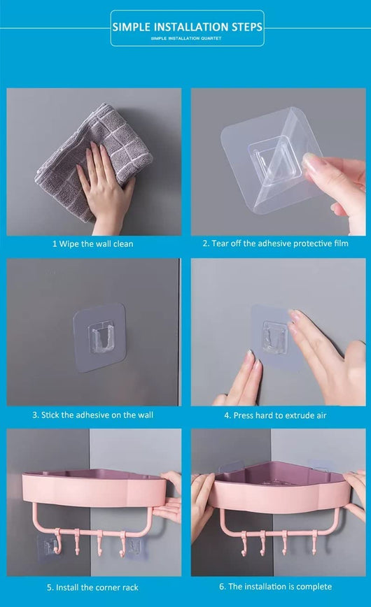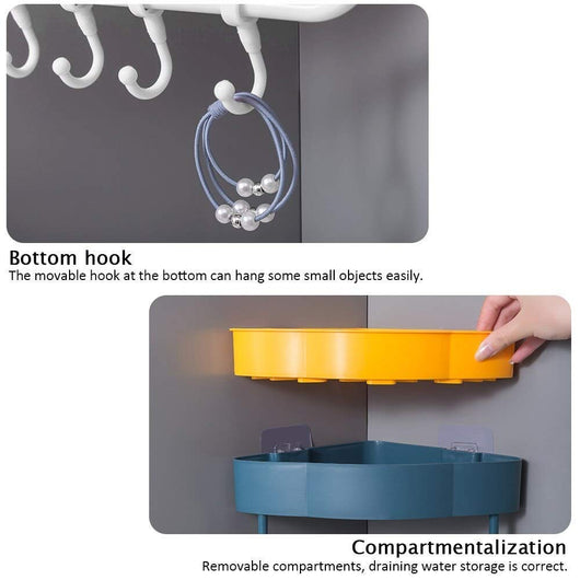 Maximize your bathroom storage with this Adhesive Bathroom Corner Shelf with Hooks. Designed for easy installation without drilling, it firmly adheres to smooth surfaces to hold toiletries neatly in place. The corner design optimizes unused space, while sturdy hooks provide added convenience for hanging towels or accessories. Ideal for maintaining an organized, clutter-free bathroom environment with a professional touch.