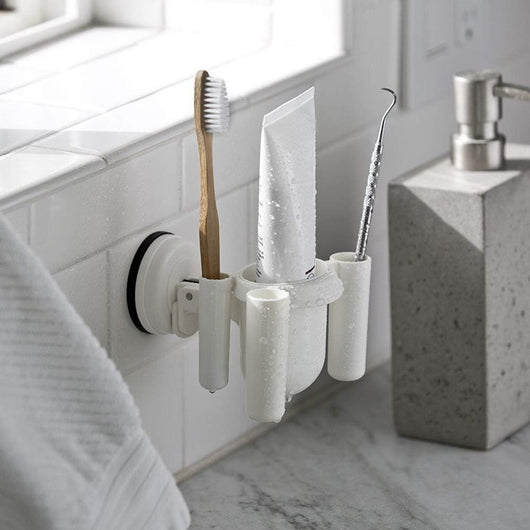 Organize your bathroom efficiently with the All-in-One Wall Mount Toothbrush & Toothpaste Holder. This practical solution keeps your toothbrushes and toothpaste neatly stored and easily accessible while saving countertop space. Its wall-mounted design ensures hygiene by reducing contact with surfaces, promoting a cleaner environment. Crafted for durability and convenience, it streamlines your daily oral care routine with smart storage in a compact form.