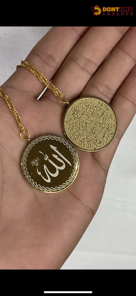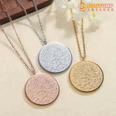 This Ayat al kursi pendant features the powerful verses from the Holy Quran. Made with high-quality materials, it serves as a beautiful reminder and protection for the wearer. The versatile design makes it suitable for daily wear or special occasions. Enhance your spiritual journey with this symbolic piece.