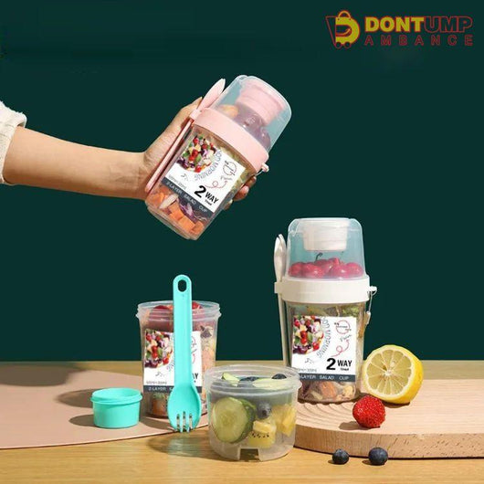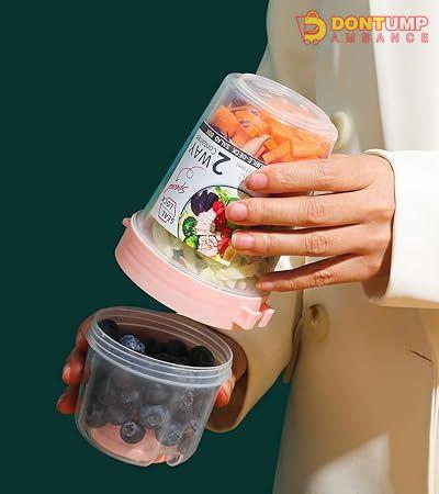 - Multifunctional Design: 2-layer dry and wet separation design, top transparent cup can store cereal, oats, oatmeal, fruit, nuts also can be used as a serving bowl. Bottom yogurt container is used for liquid food or pasta, such as milk, soup, coffee, juice, porridge and so on. The dry and wet separation design can perfectly keep food delicious and fresh, do not get soaking or mushy