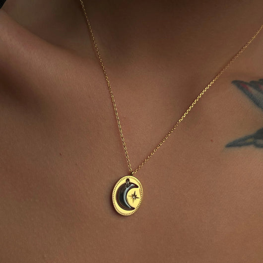 Elevate your accessory collection with the Celestial Layered Necklace, featuring an artful moon and star design. This expertly crafted piece combines delicate layers to create depth and elegance, symbolizing celestial beauty and harmony. Perfect for complementing both casual and formal attire, it offers subtle sophistication while expressing a timeless connection to the night sky. Durable yet lightweight, this necklace ensures comfortable wear without compromising style.