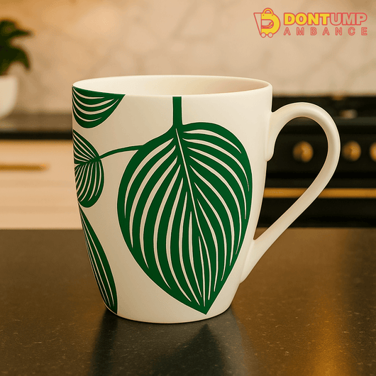 Ceramic Leaf Print Coffee Mug – Elegant Green Botanical Design for Kitchen & Home Use