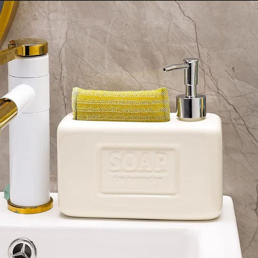 Elevate your kitchen organization with this Ceramic Soap Dispenser and Sponge Holder Caddy. Crafted from durable ceramic, it offers a sleek, easy-to-clean surface that resists stains and moisture. The integrated design keeps soap and sponge neatly together, reducing countertop clutter and enhancing hygiene. Its sturdy construction ensures stability, while the dispenser provides a smooth, controlled soap flow, making daily cleaning tasks more efficient. Ideal for a professional kitchen setup or a stylish home environment.