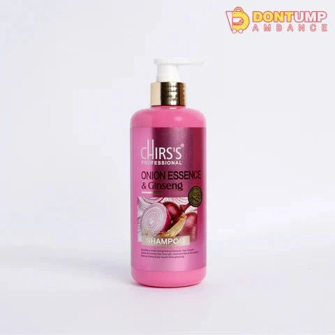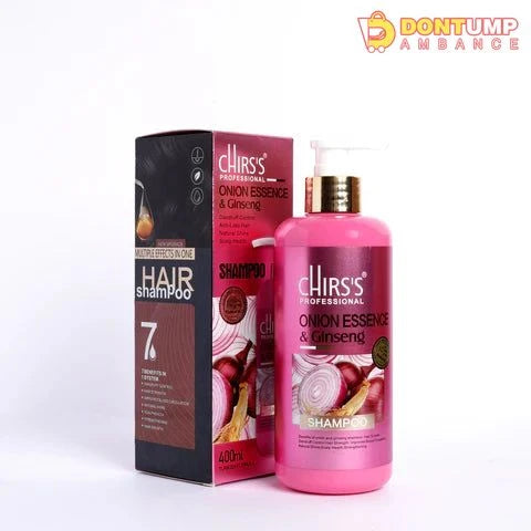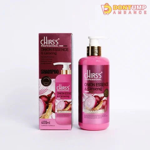 Chris's Professional Onion Essence & Ginseng Shampoo" is a hair care product in a 400 ml bottle designed to promote hair health. The shampoo contains onion essence, believed to stimulate hair growth and strengthen hair, along with ginseng, a traditional ingredient known for its rejuvenating properties. It's designed for daily use to cleanse the scalp and hair while promoting a healthier and shinier appearance.