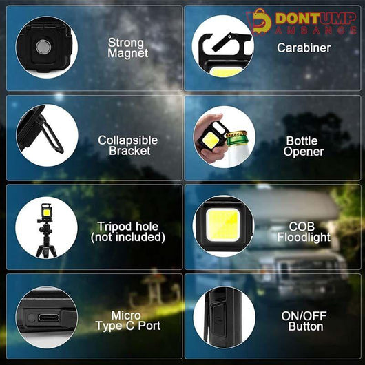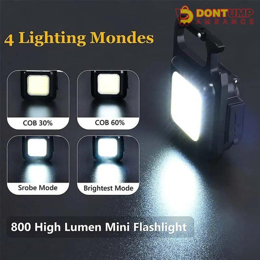This compact COB keychain light offers bright, high-quality illumination in a small package. With its energy-efficient COB technology and convenient keychain design, you can easily see and maneuver in low-light situations. Perfect for camping, night walks, or emergency situations.