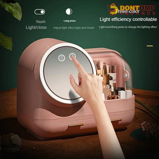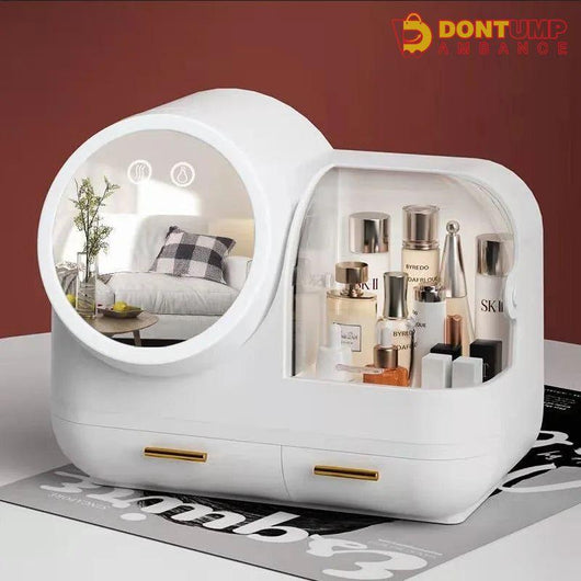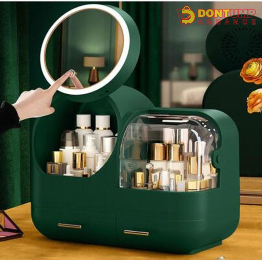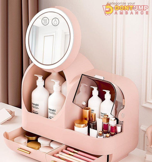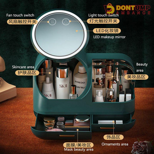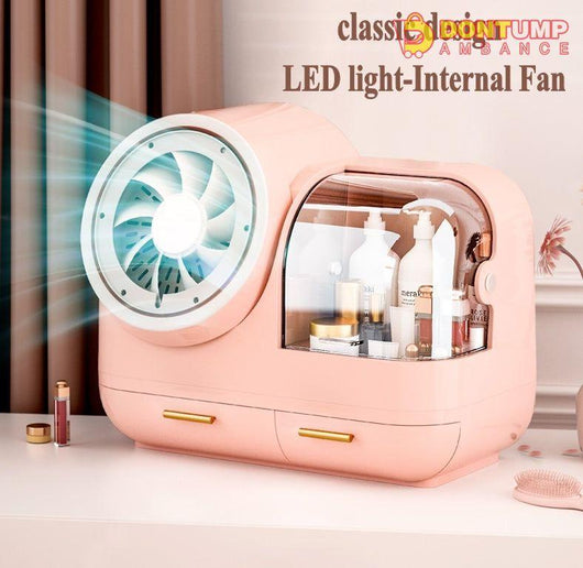 Organize your cosmetics while keeping cool with our Cosmetic Organizer. The built-in fan creates a refreshing breeze while the LED mirror provides perfect lighting. With this all-in-one organizer, you'll never have to worry about clutter or discomfort while getting ready. Expertly designed for your convenience.
