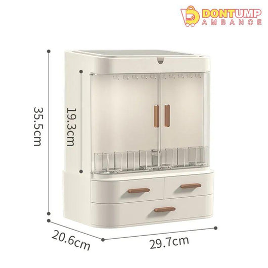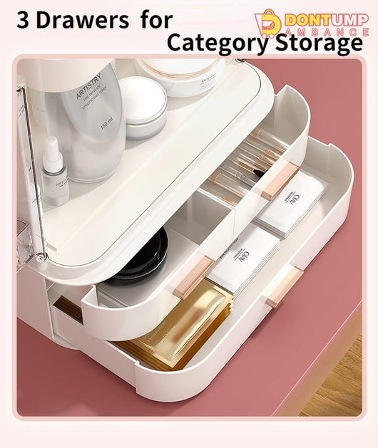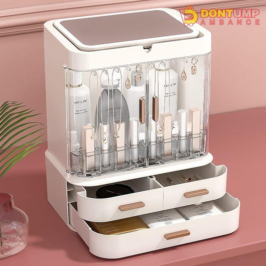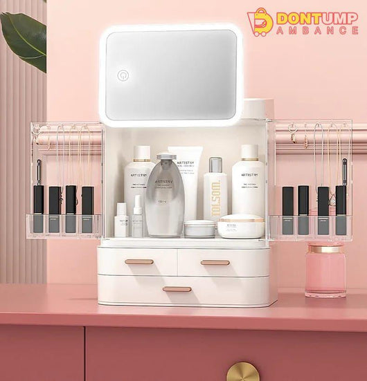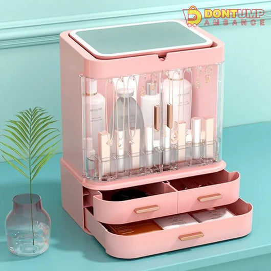 This cosmetic storage box with mirror and LED light is a must-have for both everyday use and special occasions. The LED light allows for easy and accurate makeup application, while the spacious storage compartments keep all your beauty essentials organized and easily accessible. Stay organized and effortlessly flawless with this storage box.