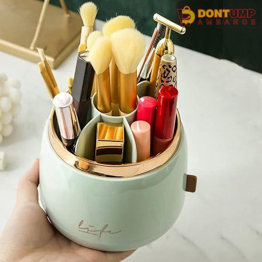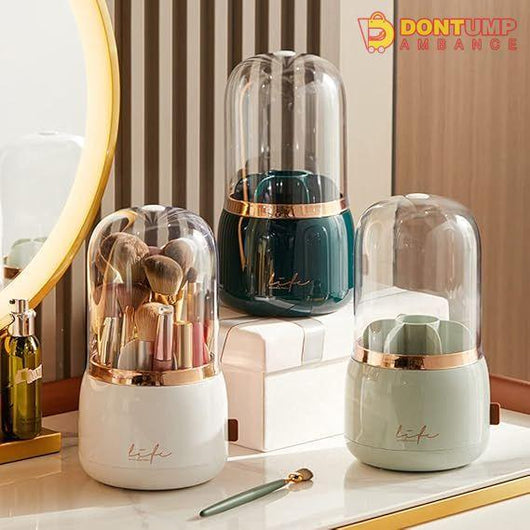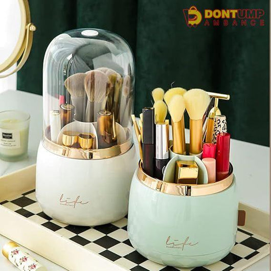 Organize and protect your cosmetics with this dustproof rotating compartment brush. The rotating design allows for easy access to your favorite products while keeping them clean and organized. Keep your beauty routine efficient and clutter-free with this practical storage solution.