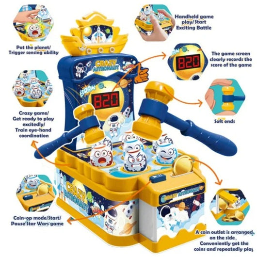Experience fast-paced fun with the Crazy Astronaut Mole Attack Game, featuring engaging light and sound effects that enhance gameplay. Designed to improve hand-eye coordination and reflexes, this game challenges players to react quickly as astronaut-themed moles pop up unpredictably. Its interactive design makes it an ideal choice for skill development and entertainment, providing an immersive and stimulating experience for players of all ages.