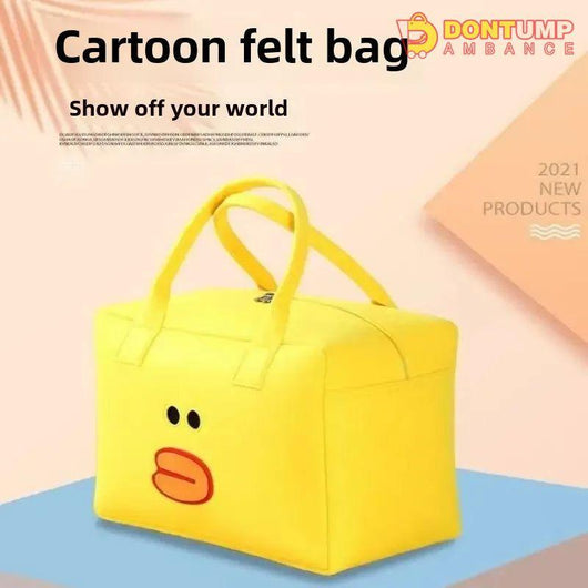 Add a splash of fun to your everyday adventures with this adorable Cartoon Duck Felt Bag! Made from soft, durable felt material, this cheerful yellow bag features a playful duck face design that’s sure to turn heads. Lightweight yet spacious, it's perfect for carrying essentials on the go — whether for school, travel, or casual outings.
