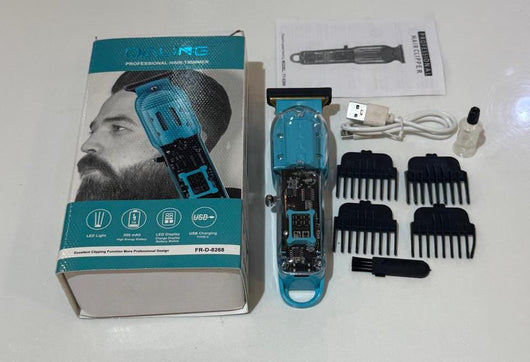The Daling New Full Transparent Visible Body Hair Cutting Machine is a cordless shaver and trimmer designed for professional barber use. Its transparent body allows clear visibility of the cutting mechanism, enhancing precision during grooming. Cordless operation ensures flexibility and ease of movement, making it ideal for detailed haircuts and body grooming. This tool combines innovative design with practical features to deliver efficient, controlled trimming without the hassle of cords.