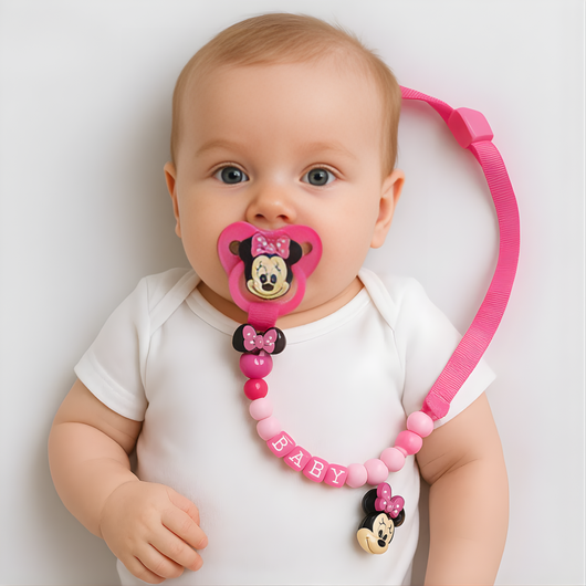 Keep your baby’s pacifier safe, clean, and always within reach with the Disney Mickey & Friends Silicone Pacifier Clip Set! 🐭💖 Featuring adorable Mickey & Friends designs, this cute and colorful clip adds a magical Disney touch to your baby’s essentials. 🌈✨ Made from high-quality food-grade silicone, it’s soft, chewable, BPA-free, and perfectly safe for your little one. The strong yet gentle clip easily attaches to clothes, bibs, or stroller straps — preventing pacifiers from falling or getting lost. 🍼🌟