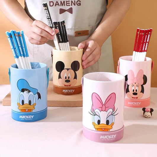 Made from high-quality glazed ceramic, this charming utensil container combines both fun and function. The cylindrical “barrel” shape provides ample space for your chopsticks, spoons, forks or other kitchen tools, while the built-in drainage holes at the base keep things dry and hygienic — perfect for after washing or for utensils that tend to drip. The design features beloved characters — Mickey Mouse, Minnie Mouse, Donald Duck and Daisy Duck — in a cute, colourful print that appeals to both kids and any Disney fan.