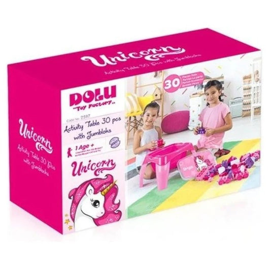 The Dolu Unicorn Water and Stand Table with 30 Jumpblocks offers a creative and engaging play experience for children. Featuring a water table paired with a sturdy stand, it provides an interactive environment that encourages sensory exploration and imaginative play. The set includes 30 colorful Jumpblocks, promoting fine motor skills and coordination as children build and balance. Designed for durability and ease of use, this product combines fun and developmental benefits, making it a
