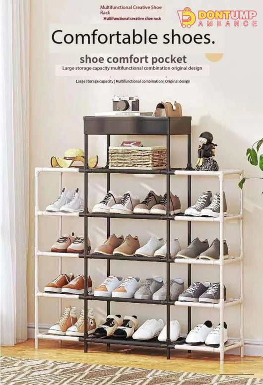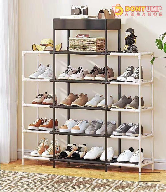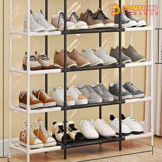 This Double Row Shoe Rack efficiently organizes and stores your footwear, making it easy to find and access your shoes. With two rows of racks, this product maximizes storage space. Keep your shoes neatly organized and easily accessible with this functional and practical shoe rack.
