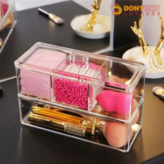 Organize your cosmetics with our dual layer acrylic organizer. With two layers, you'll have plenty of space for all your beauty essentials. Keep your products easily accessible and neatly displayed. Say goodbye to cluttered counters and hello to a streamlined beauty routine.