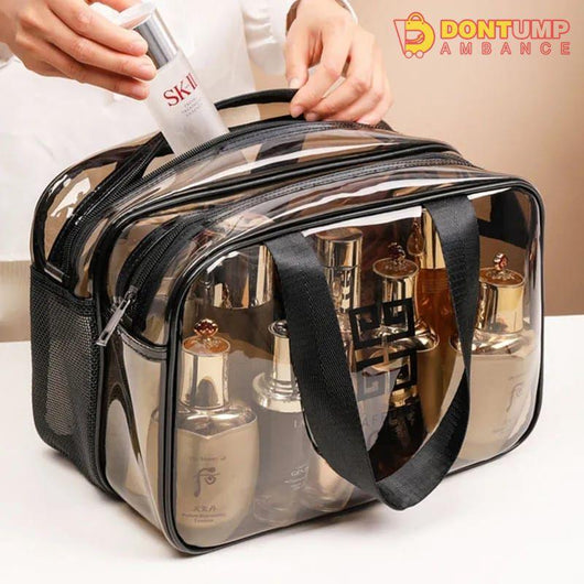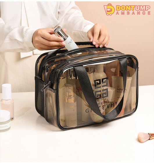 This dual layer waterproof cosmetic bag offers double the protection for your makeup and skincare products. Its waterproof material ensures that your items stay dry even in wet environments. With two separate compartments, you can easily organize and access your beauty essentials on-the-go. Keep your products safe and organized with this practical and durable cosmetic bag.