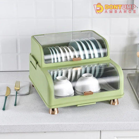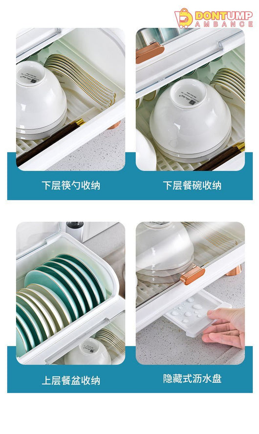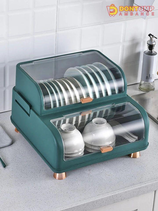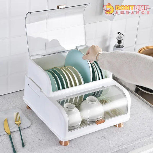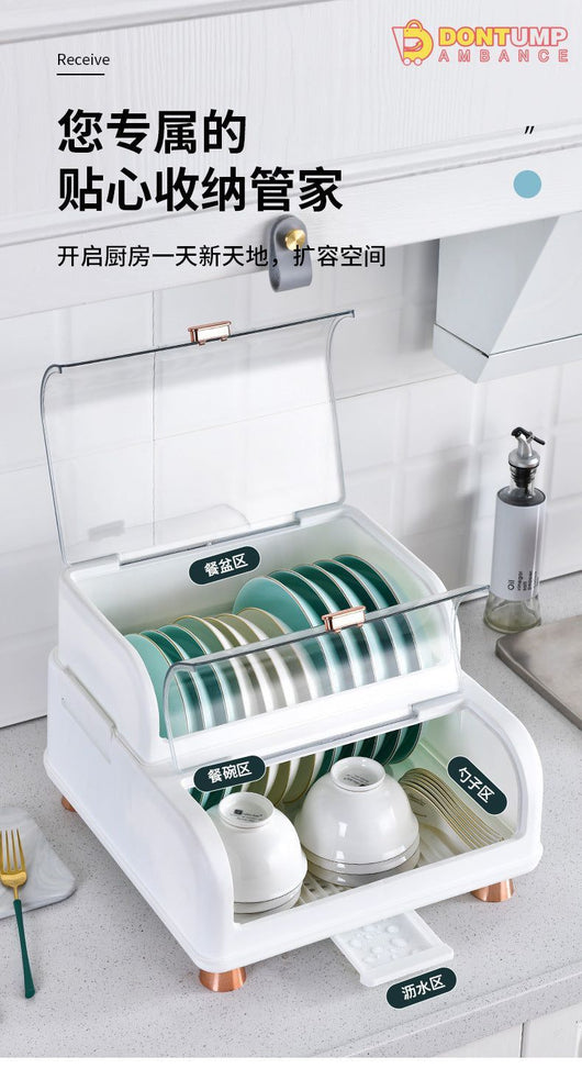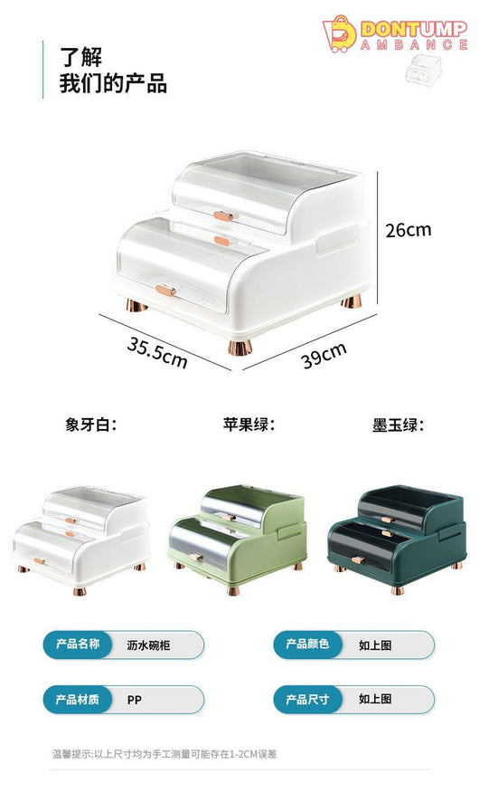 This durable and efficient DUAL LAYERS DISHES RACK WITH LID is perfect for organizing your kitchen and saving space. With two layers, you can store twice as many dishes while the lid helps keep them clean and protected. Save time and effort with this essential kitchen tool.