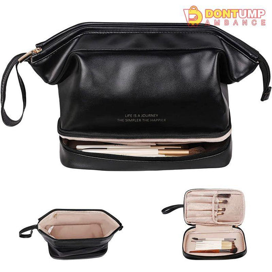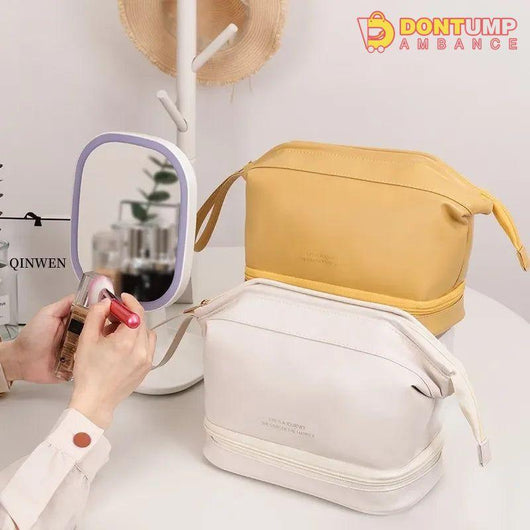 This DUAL ZIPPER COSMETIC BAG features two individual compartments, providing ample space for organizing and storing all your cosmetics and toiletries. The durable material and secure zipper closures ensure your items will stay protected during travel. Stay organized and stylish with this versatile cosmetic bag.